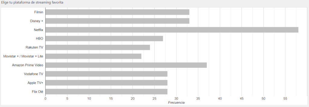 Y después de varios meses y más de 300 votos, debemos decir que ha sido Netflix quien se ha llevado el gato al agua y ha tenido más votos como plataforma de streaming favorita.