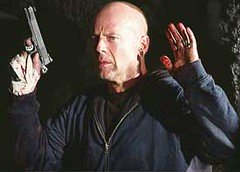 El guión tiene algún golpe de efecto que hace que la historia no sea del todo previsible, aunque algunas situaciones no acaban de cuajar por su falta de credibilidad. Willis hace un buen papel, otro más, encarnando a ese policía metido en un marrón considerable, que ha de hacer uso de su inteligencia para resolver la situación con acierto, si quiere volver a ver a su mujer y a su hija (con las cuales no tiene muy buena relación como se trasluce al comienzo de la película). Si que la última media hora se hace un poco pesada (recuerda al final de El cabo del miedo, con ese asesino que no acaba de palmarla) y le sobra toda la traca fallera del final, con ese derroche de fuego, que recuerda a La casa de Cera. Por lo demás es un película intranscendente que si tiene cierta chispa y alcanza cierta repercusión mediática es gracias a Willis que asume el protagonismo absoluto de la cinta y sale airoso.
